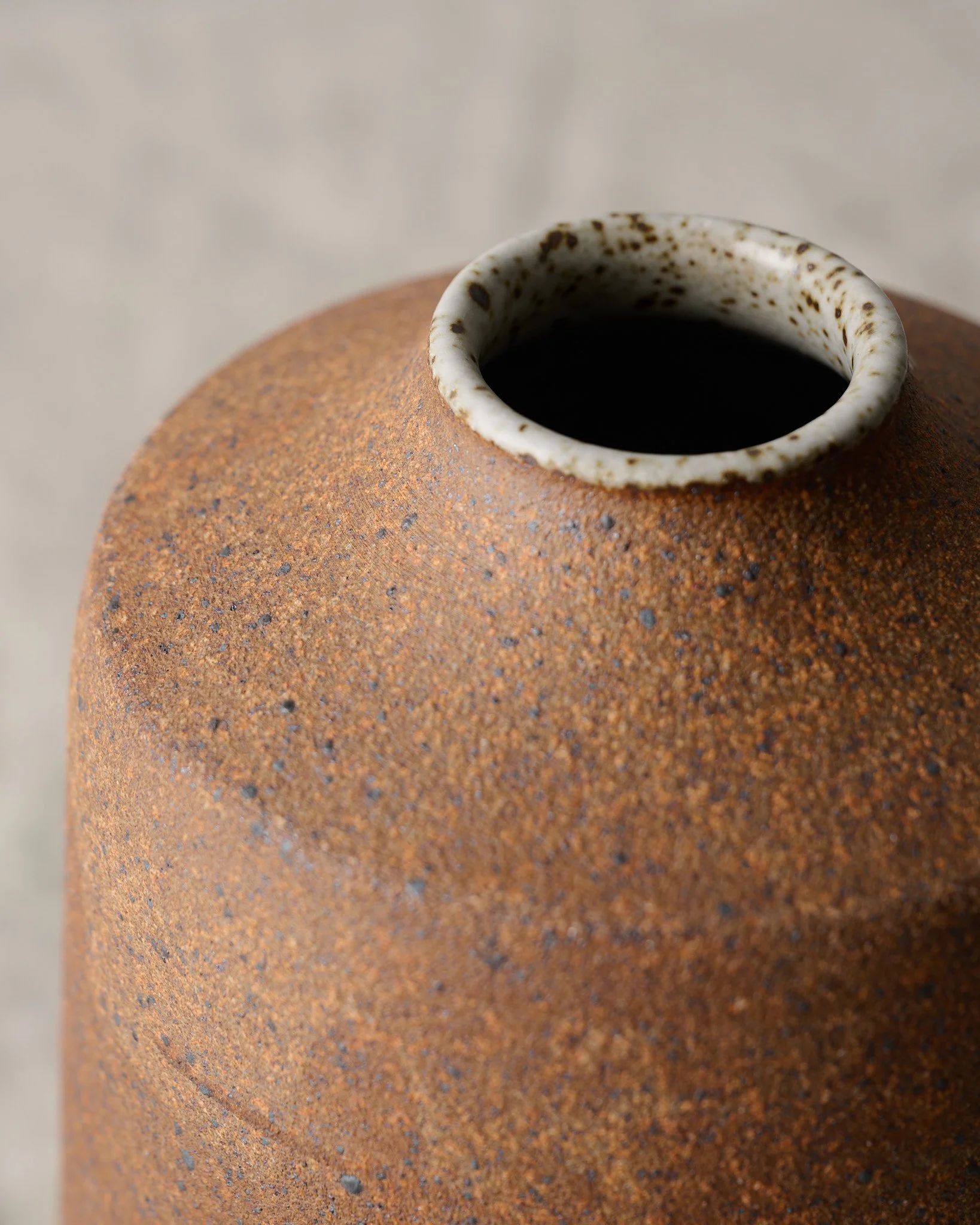Unglazed on its exterior to showcase the raw clay body, and provide a matte backdrop for the florals to shine. Petrichor is fired in a gas reduction kiln, resulting in a darker, textural, earthy vessel reminiscent of ancient clay pots.